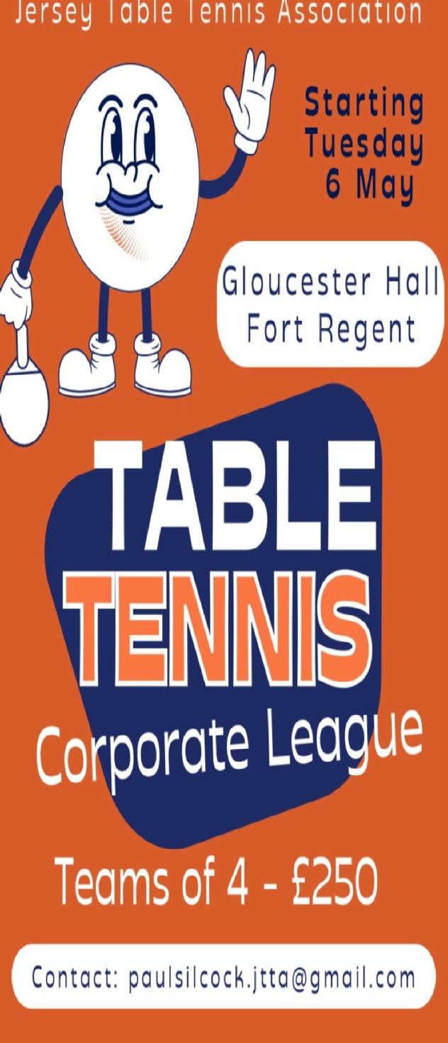League play is open to players who have paid the Jersey Table Tennis Association membership fee. Players enter teams and matches will be played at Fort Regent, Gloucester Hall, Arena B, from Tuesday, starting on the 13 May from 6.30pm - 8.30pm with an induction evening on Tuesday 6 May, 2025 and will run until July 2025. Please read the REPORT by Oliver Kidman coutesy of the JEP.